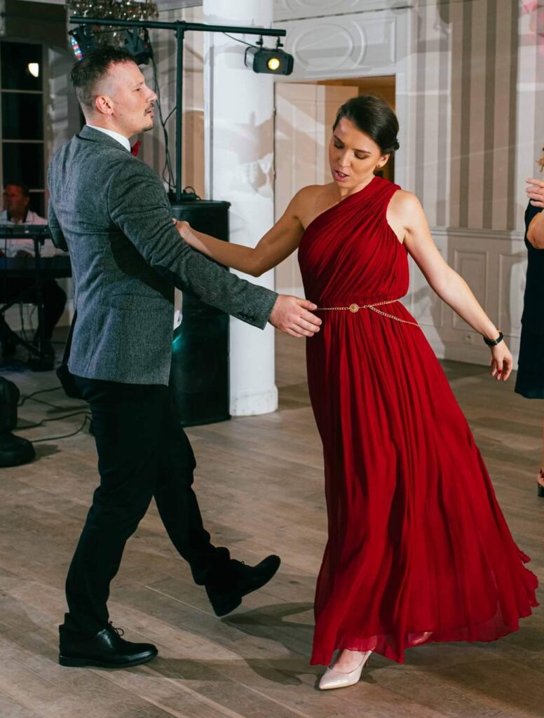 Pierwszy taniec? Emocje i trochę improwizacji! 😉 A potem zaczynamy zabawę, przerywaną pysznym tortem i atrakcjami – bez zbędnego skrępowania, za to z humorem i luzem.